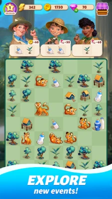 From the story above, you already know what you will have to do in Travel Town, right? To rebuild the city from scratch, you must solve fusion puzzles to earn gold coins and resources. There, you will find and combine similar objects to create new objects. From there you will have tools and resources to build such as wood, stone, food, construction materials… Completing those puzzles will help you have more economic resources to build the city.
